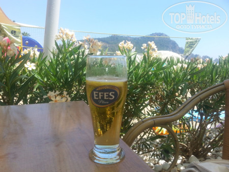 Вино очень приличное (красное, правда не пробовали), только розовое и белое. Есть игристое. Виски J@B, раки местная, естественно -отличная, есть водка и джин Gilbis, я не пробовал. Есть и разливное пиво любителям.... Как писал ранее, напитки не только в ресторане, но и в баре у пляжа, причем там же чайно/кофейная станция самообслуживания, включая заварной черный чай в чайниках. Воды в холодильниках достаточно, на каждом шагу.