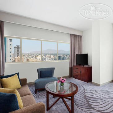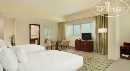 Отдыхали в июле 2023года 2недели. На семью 2взрослых и 4детей брали 2номера. Сделали апгрейд без никаких доплат, было очень приятно) Номера просторные, постель удобная, есть чайник ( кофе, чай, молоко), гладильная доска с утюгом, халаты, телевизоры огромные (в основном каналы на арабском, мы подключали фильмы с телефона на тв). Шампунь, бальзам, гель для душа, лосьон для тела наполняют по необходимости. При заселении дают приветственные печеньки каждому гостю - очень вкусные. Есть небольшой бассейн на крыше. Мы там были только пару раз, так как из отеля возит трансфер до пляжного отеля Hilton Hampton Marjan Island 5*. В 10:00 забирают, обратно в 16:30. Обедали там же. Завтраки были вкусные, всегда все свежее. Администратор Ловет, девушки официантки, особенно девушка из Мьянмы Ли Мэй (если правильно запомнила) были очень внимательны, дарили детям шоколадки. Повар Эльдо и другие всегда подходили и интересовались, все ли нам нравится. Угощали мороженым почти каждый день. Рядом с отелем много магазинов, кафе, торговых домов. Удобное расположение. Благодарим сотрудников отеля за такой замечательный отдых!